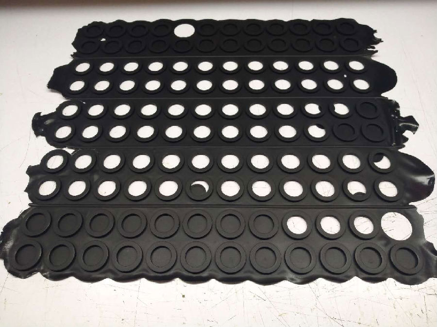 出來(lái)在模具上下足夠的功夫之外,對(duì)于硫化生產(chǎn)過(guò)程中也需要控制產(chǎn)品的自拆是否好做,在生產(chǎn)加工過(guò)程中出現(xiàn)發(fā)軟現(xiàn)象會(huì)導(dǎo)致自裁難毛邊太軟,裁邊容易撕裂產(chǎn)品,這時(shí)應(yīng)該適當(dāng)?shù)目刂茣r(shí)間,將硫化時(shí)間控制在一定的范圍,不能太長(zhǎng)也不能太短,時(shí)間太長(zhǎng)也會(huì)導(dǎo)致產(chǎn)品太脆,在拆邊是會(huì)出現(xiàn)撕裂現(xiàn)象!其次拆邊比較困難的產(chǎn)品可以將產(chǎn)品先放入打邊機(jī)里面機(jī)械拆邊進(jìn)行頭道工序,將外圍的大毛邊先清理,那手動(dòng)拆邊的效率就快了很多,對(duì)于拆邊來(lái)說(shuō)在模具與生產(chǎn)工藝上面有者密切的聯(lián)系,毛邊的大小在原材料上面也要注意一定的因素!