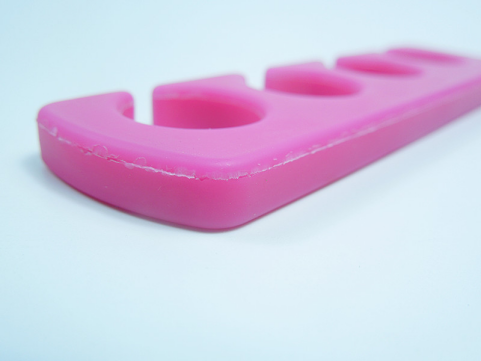 一般產(chǎn)品出現(xiàn)爆邊的材料硬度在30度到40度左右而高硬度的材質(zhì)基本沒有這種現(xiàn)象,而在帝博硅膠制品廠家主要常見的產(chǎn)品有產(chǎn)品厚度比較薄的表帶,一些柔軟材質(zhì)低硬度電子產(chǎn)品分子托等,造成產(chǎn)品出現(xiàn)爆邊現(xiàn)象的原因:原材料材質(zhì)的問題,填充的炭黑量過多硅油量過大所致,原材料當(dāng)中硅油在混煉膠完成以后放置太久導(dǎo)致硫化劑逐漸失效,混煉時硫化劑用量過多硫化溫度過高,原材料過重導(dǎo)致產(chǎn)品毛邊過大在加上材質(zhì)柔軟,自裁邊拉壞等等原因。